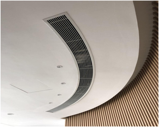本展廳為敞開區(qū)域,空間內(nèi)沒有具體隔斷,因此在空調(diào)選型和分布位置上需要參考實際吊頂造型。本展廳原始層高為4.6米,主梁下為3.4米,現(xiàn)吊頂完成面層高為3米,頂內(nèi)層高較為充裕,我司建議使用風管式空調(diào)放置在吊頂內(nèi),可以最大程度不影響美觀度。